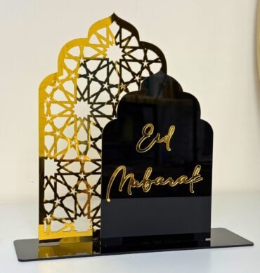 2-in-1 Ramadan Mubarak & Eid Mubarak Acrylic Sign – Black and Gold