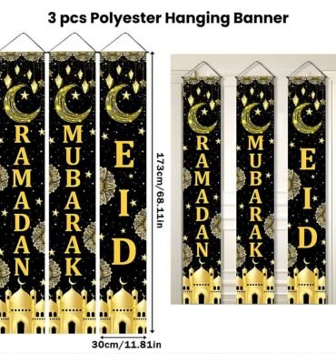 Black and Gold 2-in-1 Ramadan Eid Mubarak Banner Set