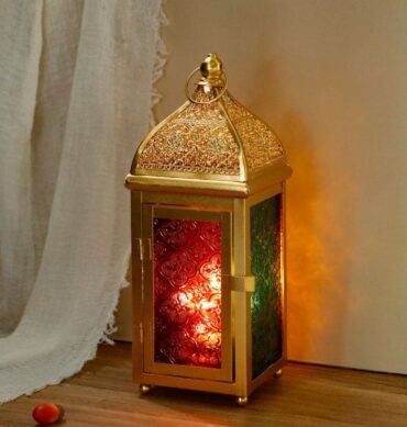Gold Moroccan Styled Lantern with Colourful Glass