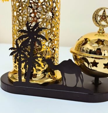 Gold and Black Moroccan Style Lantern with Incense Burner