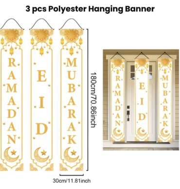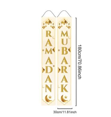 White and Gold 2-in-1 Ramadan Eid Mubarak Banner Set