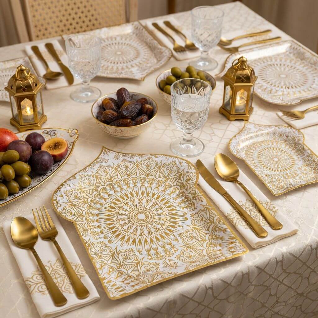 Arch Shaped Gold Foil Plate for Ramadan Eid – 7 inch
