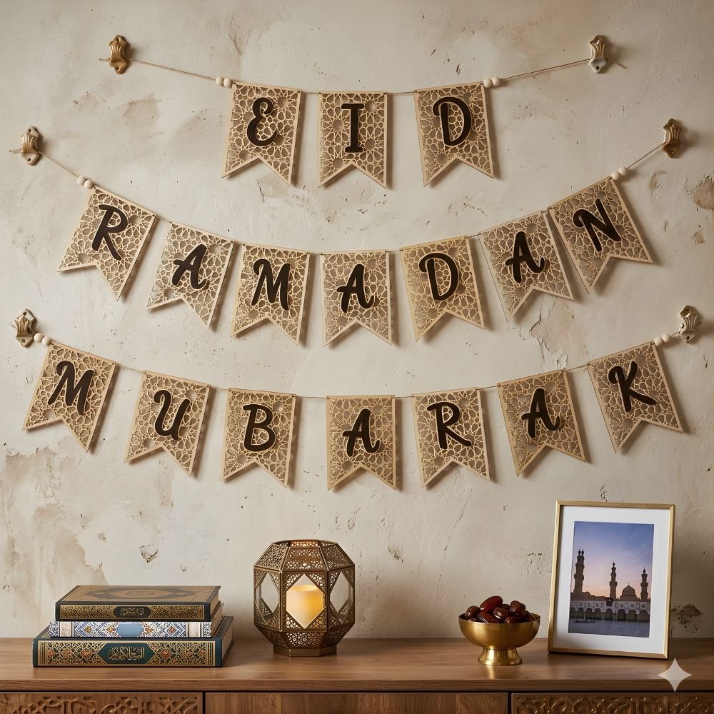 Bring a cosy, rustic ambience to your Ramadan and Eid celebrations with this beautifully crafted bunting banner set. Durable, reusable, and versatile – a perfect addition to your festive décor year after year.