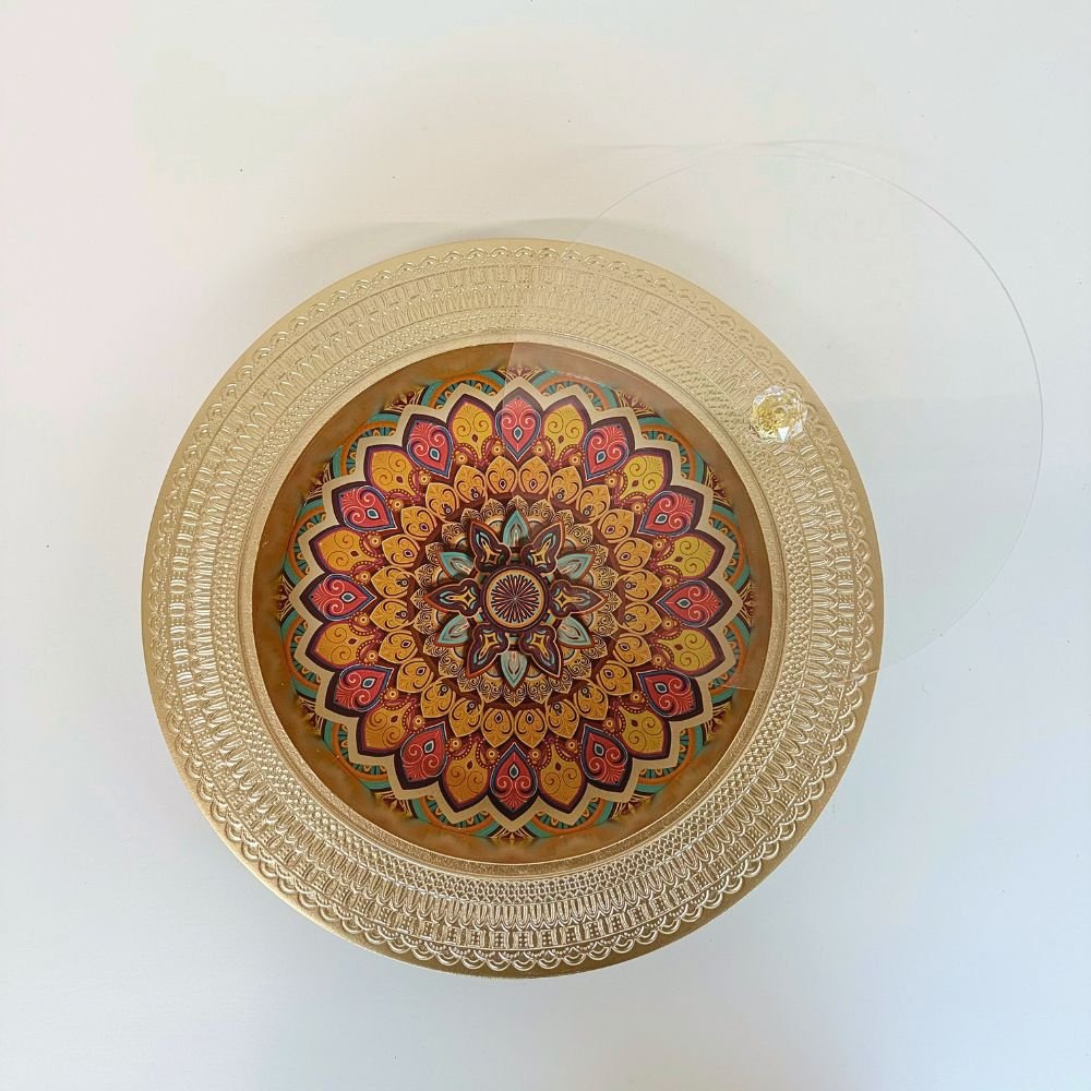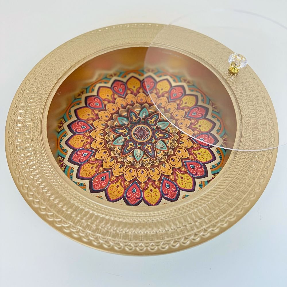 Round Gold Wooden Tray with Acrylic Lid – Multicolour