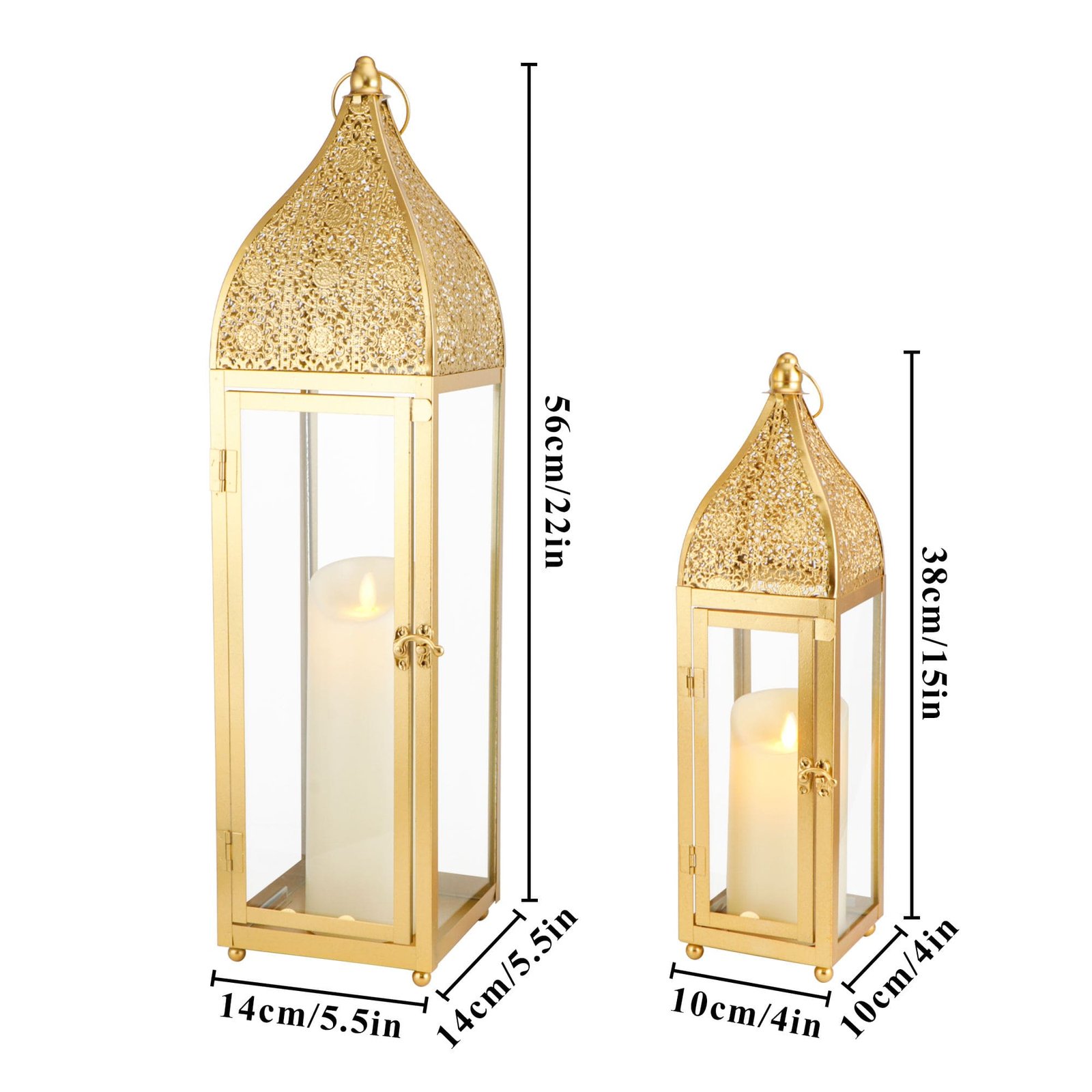 Premium Metal Construction – Crafted from sturdy metal with clear glass panels, a domed top, and a hanging loop for timeless Middle Eastern elegance.