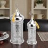 Elevate your Ramadan décor with a set of 2 silver Ramadan Lanterns with LED, each topped with a beautifully gold-plated crescent moon and adorned with a delicate tassel. Featuring built-in LED lights, these lanterns provide a safe, warm, and festive glow—perfect for illuminating your home during Ramadan, Eid, and other Islamic celebrations.