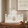 Brighten your home with this white wooden mosque with LED, featuring a mosque-inspired design and soft LED lighting in the doorway. Crafted from durable wood with a clean white finish, it adds a serene and festive touch to any space. Perfect for Ramadan décor, Eid celebrations, or Islamic home decoration, this illuminated mosque enhances shelves, tables, or prayer areas with elegance and charm.