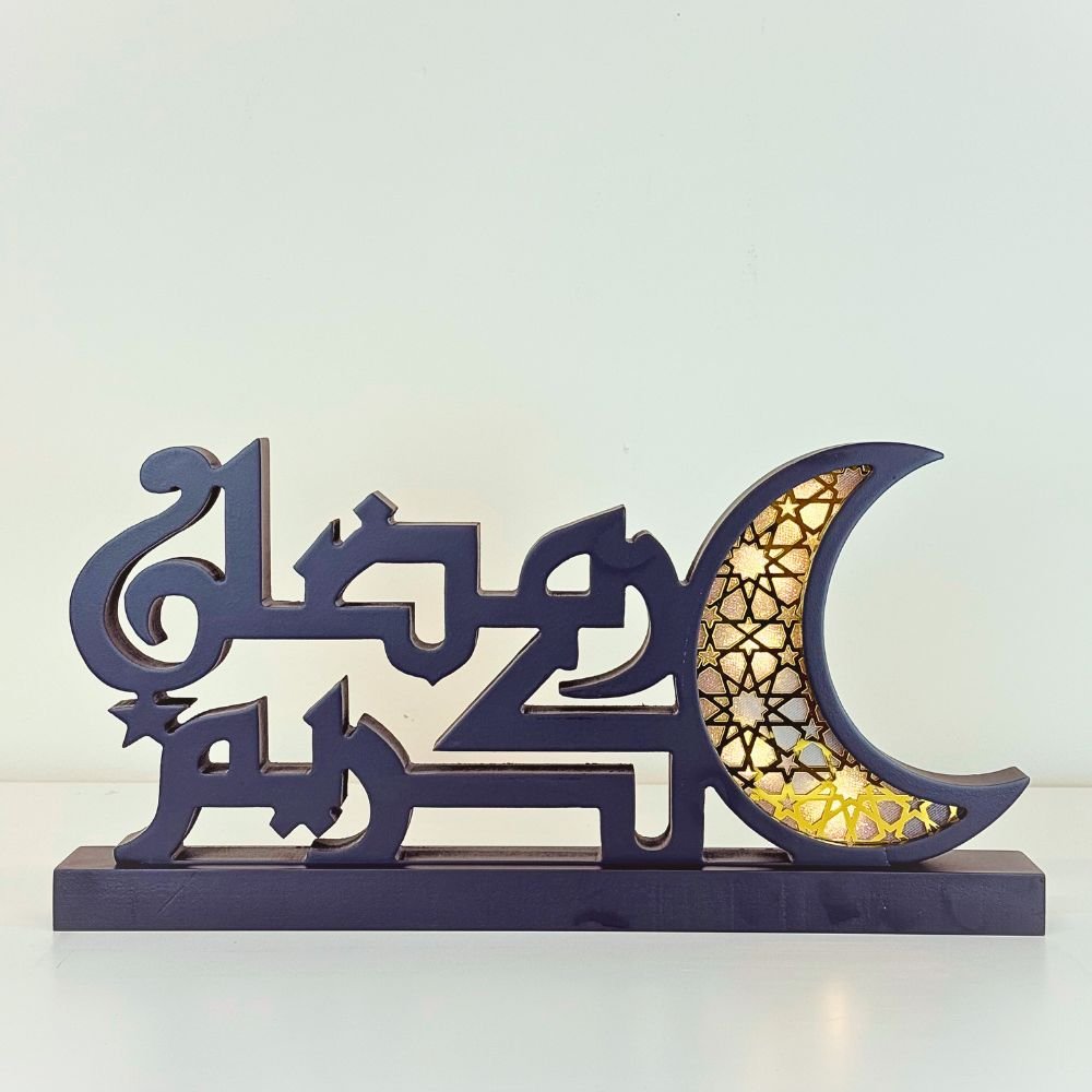 Add a refined touch to your Ramadan décor with our Wooden Ramadan Kareem رمضان كريم Sign with LED Moon. Crafted from premium wood with elegant detailing, it blends traditional charm with a modern look, making it perfect for any interior.